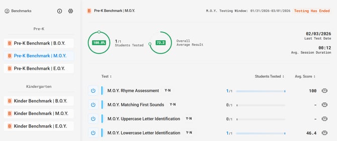 • The Last Test Date and Average Test Session duration for this Benchmark Subject Tab