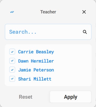 3. Once you’ve made your selections, click Apply to filter.