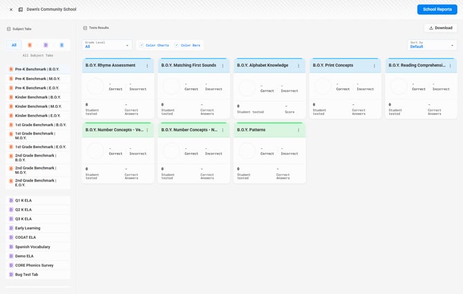 3. You also have the options to toggle color on or off, show each student, and sort. You can download any test results by clicking on the blue Download button located at the top right of the application (see Image 4).