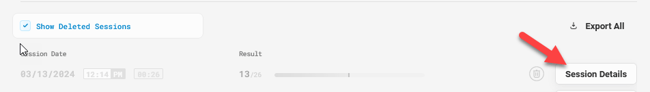 - Under Sessions you will see the option "Show Deleted Sessions." To restore a test session, click the "Show Deleted Sessions" box.
