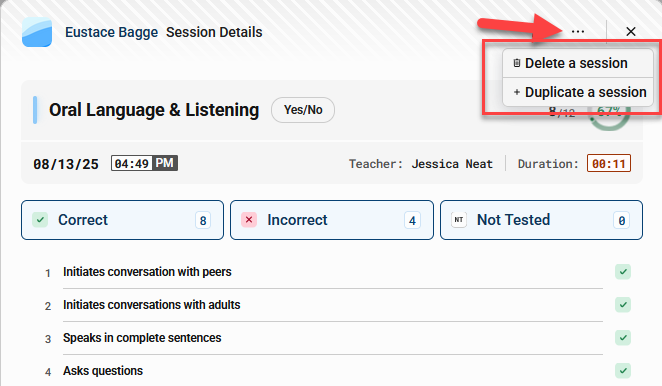 This article outlines steps to take when needing to delete or restore a test session. Please note that scores from a first test session will appear as the baseline on all reports. If the first test session is deleted, then the next test session will become the baseline.