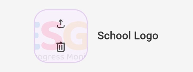 1. Hover over the School Logo button to see the options to add/ delete a picture, as represented by the upload and trashcan icons (see Image 2).