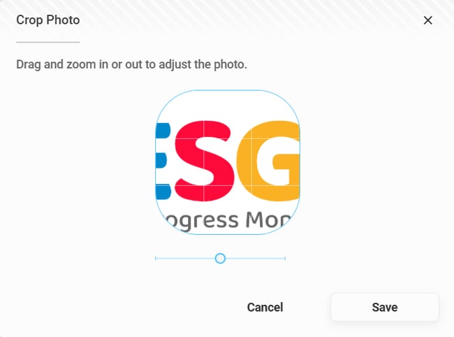 2. Clicking elsewhere on the School logo button opens the Crop Photo pop-up which allows you to position and crop your uploaded photo (see Image 3).