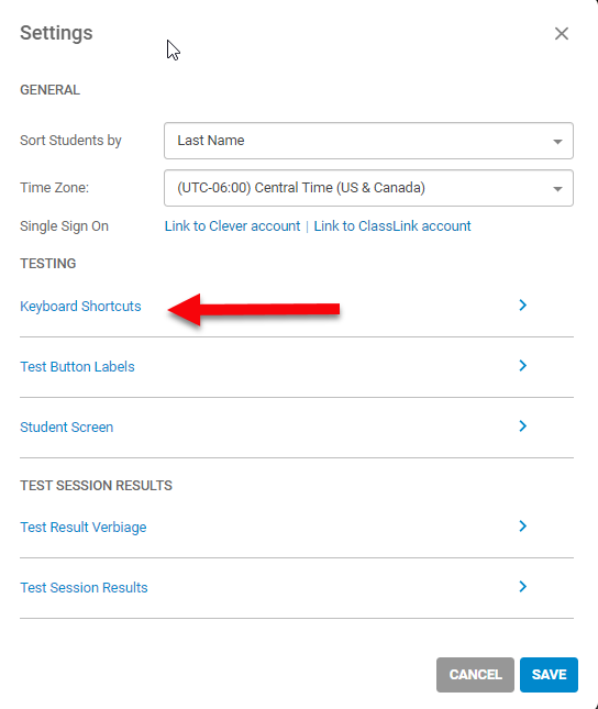 Keyboard Shortcuts allow the use of the left and right arrow keys on the keyboard to mark a question as correct or incorrect, instead of clicking the “Yes” and “No” buttons on the screen. Steps to enable keyboard shortcuts are shown below.