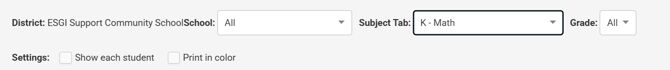 7. In the Settings option, check the box to show results for each student. Check the box to print the report in color.