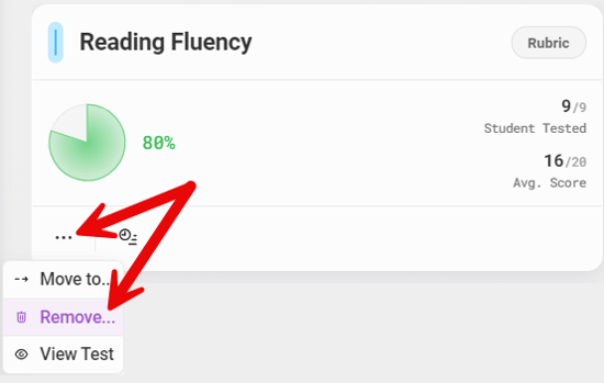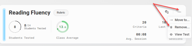 - If your test card view is small, medium, or large select the 3 dots at the bottom of the test card to view the remove option (Image 1).