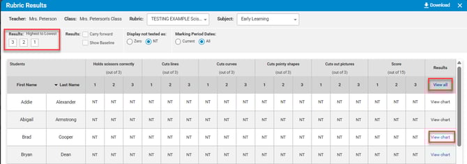 View Chart - will display a chart for an individual student.