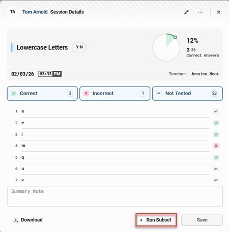 The Subset Test feature allows you to administer only selected questions from a test, creating a shorter assessment without giving the full test.