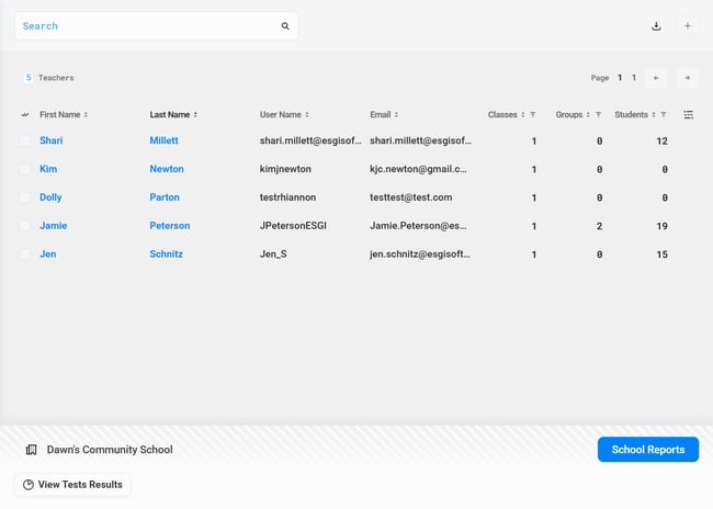 Note: The School Reports (or District Reports if in a District Admin Account) button in the bottom right corner of the application (see Image 1) will remain constant throughout all levels of the Data Page hierarchy by default.