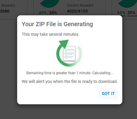 8. When downloading a large amount of data, a pop up will appear letting you know the file is generating and will continue to run in the background. Click "Got It" to continue using your account.