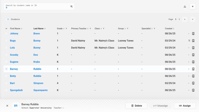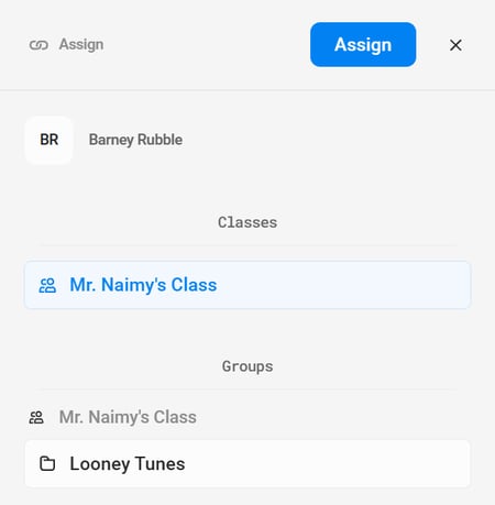 4. After at least one student has been selected, click on the Assign button that appears in the bottom right corner of your screen (see Image 1).