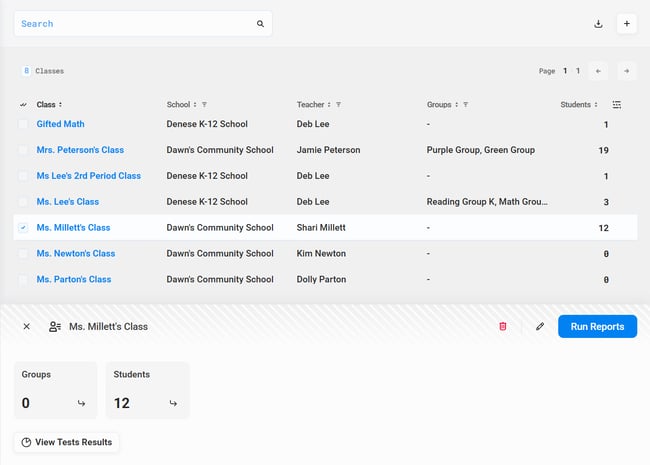 3. Select your desired class (or student) and click on the blue Run Reports button (see Image 1).