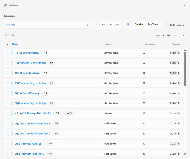 10. Utilize the filters located at the top, under "Description," to locate your desired tests, then check the box next to each test you want to add (See Image 2). When you are finished adding your desired tests, exit the Add Tests screen by clicking on the X button at the top right.